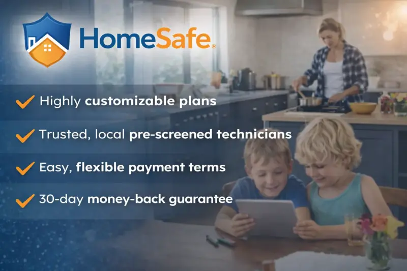 HomeSafe provides plans that cover major home systems, appliances, or both. Coverage commonly includes HVAC, plumbing, electrical systems, and appliances such as refrigerators, ovens, and washers, with optional add-ons available for select items.