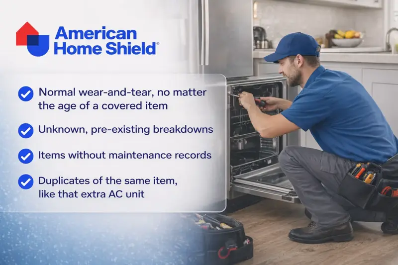 The two best examples are “properly maintained” and “normal wear and tear.” Many companies only cover systems that break down due to normal use and aging, but they also can deny claims if said items weren't properly cleaned or taken care of by the customer.